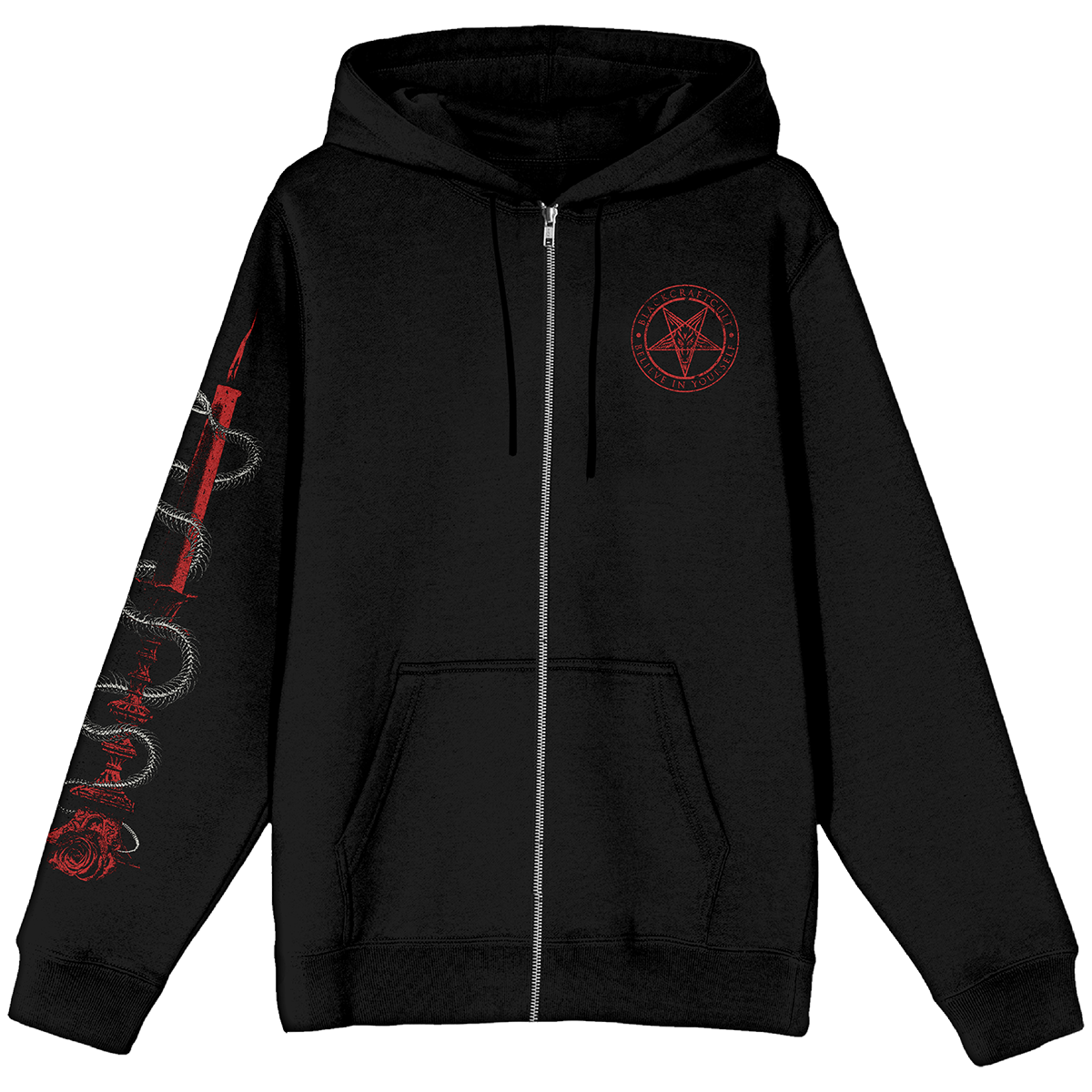 This classic fit zip-up hoodie is crafted from a blend of 80% cotton and 20% polyester, with a cozy brushed fleece interior and a soft yet durable finish. With custom Lovers and Sinners artwork along the front, back, and sleeve.