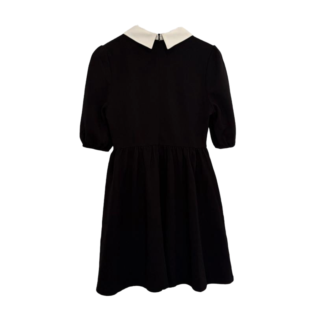 A classic style for any season. Our gothic mini dress features short puff sleeves, a flattering relaxed fit, and a contrast long pointed collar in white. Pairs perfectly with our Widowed Hat and Baphomet Belt.