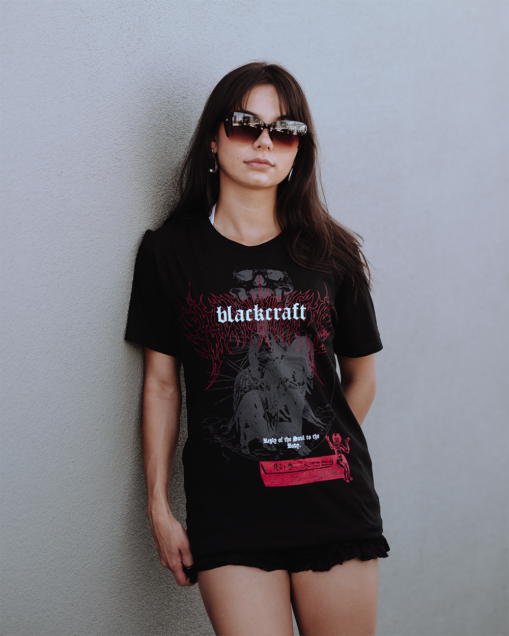 A classic fit short sleeve tee made with 100% ring-spun cotton, giving it a soft hand feel and a durable yet lightweight finish. Featuring custom Blackcraft artwork across the front.
